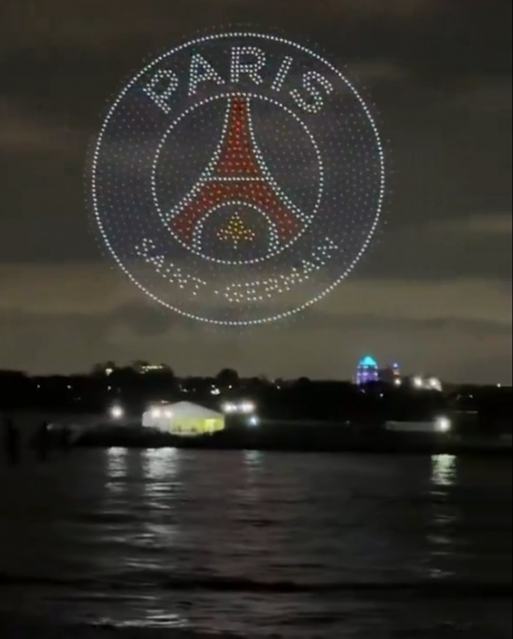 预热世俱杯决赛!无人机灯光秀展示巴黎和切尔西队徽